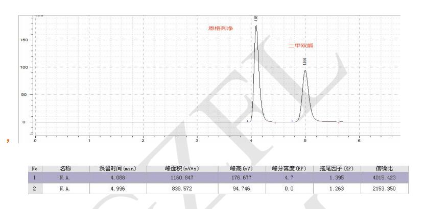 方法說明:二甲雙胍與恩格列凈為常用降糖藥,Comixsil HCS 固定相可在簡單流動相條件下實現對 二者的同時分析。分離度大且柱效良好。