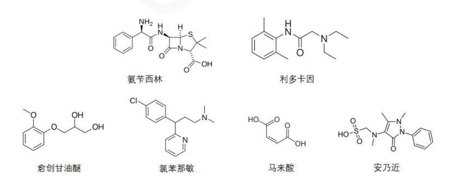 App ID: FLM-C240008 Comixsil RP-AX 同時(shí)分析鎮(zhèn)痛類藥物制劑安乃近、利多卡因、愈創(chuàng)甘油醚、馬來(lái)酸氯苯那敏、氨芐西林 色譜柱: Comixsil RP-AX 3μm 150*4.6mm(貨號(hào):FMF-AXR3-EONU) 流動(dòng)相: 時(shí)間 水 乙腈 200mM 甲酸銨(pH 3.4) 0 55 10 35 10 25 40 35 10.01 55 10 35 20 55 10 35 流速:1.0 mL/min 檢測(cè)波長(zhǎng):255nm 柱溫:25℃ 樣品濃度:N/A 進(jìn)樣量:N/A 結(jié)構(gòu)式: