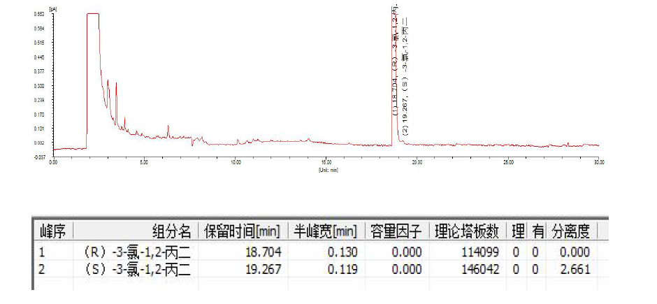 說明: 采用FBX-DEX DET Beta 30m*0.25mm*0.25um 手性氣相柱,可以成分分離(S)-3-氯-1,2-丙二醇和(R)-3 氯-1,2-丙二醇,分離度良好。而后出峰的(S)-3-氯-1,2-丙二醇,如果作為0.1%檢出限的考察,也完全分 離。 如需更大分離度,也可自行考慮FBX-DEX DET Beta 60m×0.25mm×0.25μm 手性氣相柱。 |