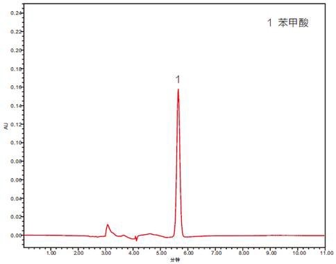 圖 1 添加水平為 25 mg/kg 飼料中苯甲酸檢測的液相色譜圖