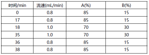 流動相:A:0.1 %甲酸水溶液 B:乙腈洗脫方式:梯度洗脫
