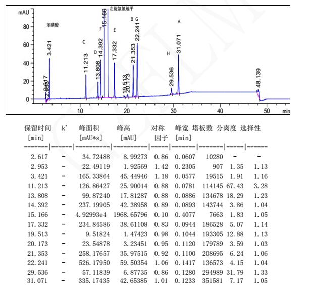 注:色譜圖中的A、B、C、D、E、F、G、H 均為雜質(zhì)